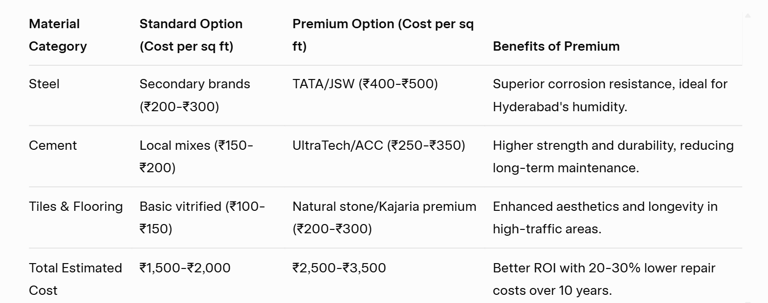 Comparison Table: Material and Cost Analysis for House Construction in Manikonda